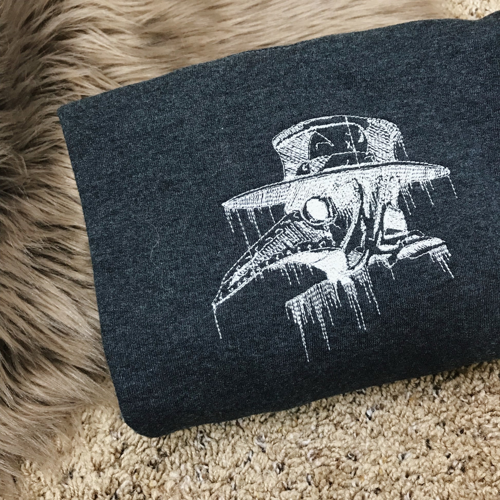 Because items are made to order or in small runs, slight variations may occur. Colors may vary slightly depending on your screen settings. White thread is used on dark garments (e.g., black, charcoal), and black thread on light garments (e.g., white, sand, ash) for visibility.